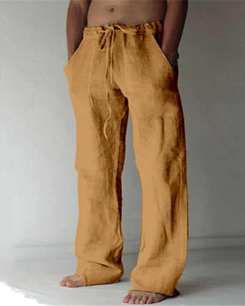 Men’s Linen Blend Straight Leg Pants with Drawstring Waist